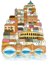 Un’illustrazione originale firmata Valentina Torboli Rapetti, che cattura l’essenza di Verona, trasformando l’iconica città in un microcosmo poetico e immaginifico.