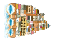 Un’illustrazione originale firmata Valentina Torboli Rapetti, che cattura l’essenza di Verona, trasformando l’iconica città in un microcosmo poetico e immaginifico.