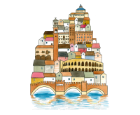 Un’illustrazione originale firmata Valentina Torboli Rapetti, che cattura l’essenza di Verona, trasformando l’iconica città in un microcosmo poetico e immaginifico.
