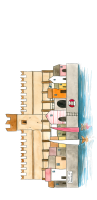 Un’illustrazione originale firmata Valentina Torboli Rapetti, che cattura l’essenza di Torri del Benaco, trasformando l’iconico borgo lacustre in un microcosmo poetico e immaginifico.