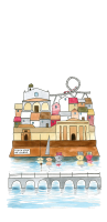 Un’illustrazione originale firmata Valentina Torboli Rapetti, che cattura l’essenza di Peschiera del Garda, trasformando l’iconico borgo lacustre in un microcosmo poetico e immaginifico.