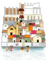 Un’illustrazione originale firmata Valentina Torboli Rapetti, che cattura l’essenza di Limone, trasformando l’iconico borgo lacustre in un microcosmo poetico e immaginifico.