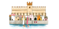 Un’illustrazione originale firmata Valentina Torboli Rapetti, che cattura l’essenza di Torri del Benaco, trasformando l’iconico borgo lacustre in un microcosmo poetico e immaginifico.