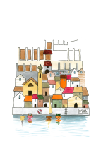 Un’illustrazione originale firmata Valentina Torboli Rapetti, che cattura l’essenza di Limone, trasformando l’iconico borgo lacustre in un microcosmo poetico e immaginifico.