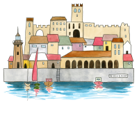 Un’illustrazione originale firmata Valentina Torboli Rapetti, che cattura l’essenza di Desenzano del Garda, trasformando l’iconico borgo lacustre in un microcosmo poetico e immaginifico.