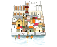 Un’illustrazione originale firmata Valentina Torboli Rapetti, che cattura l’essenza di Limone sul Garda, trasformando l’iconico borgo lacustre in un microcosmo poetico e immaginifico.