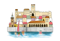 Un’illustrazione originale firmata Valentina Torboli Rapetti, che cattura l’essenza di Desenzano, trasformando l’iconico borgo lacustre in un microcosmo poetico e immaginifico.