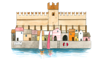 Un’illustrazione originale firmata Valentina Torboli Rapetti, che cattura l’essenza di Torri del Benaco, trasformando l’iconico borgo lacustre in un microcosmo poetico e immaginifico.