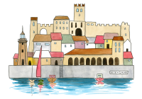 Un’illustrazione originale firmata Valentina Torboli Rapetti, che cattura l’essenza di Desenzano, trasformando l’iconico borgo lacustre in un microcosmo poetico e immaginifico.