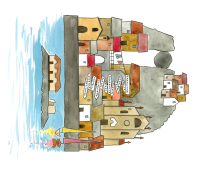 Un’illustrazione originale firmata Valentina Torboli Rapetti, che cattura l’essenza di Brenzone, trasformando l’iconico borgo lacustre in un microcosmo poetico e immaginifico.