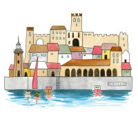 Un’illustrazione originale firmata Valentina Torboli Rapetti, che cattura l’essenza di Desenzano, trasformando l’iconico borgo lacustre in un microcosmo poetico e immaginifico.