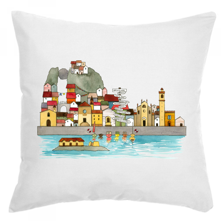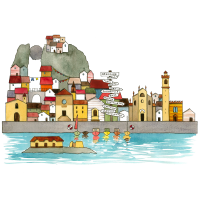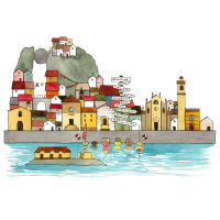 Un’illustrazione originale firmata Valentina Torboli Rapetti, che cattura l’essenza di Brenzone, trasformando l’iconico borgo lacustre in un microcosmo poetico e immaginifico.