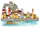 Un’illustrazione originale firmata Valentina Torboli Rapetti, che cattura l’essenza di Brenzone, trasformando l’iconico borgo lacustre in un microcosmo poetico e immaginifico.